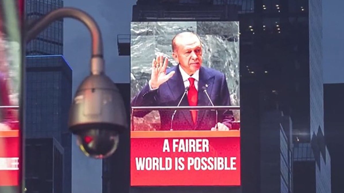 İletişim Başkanlığı, Cumhurbaşkanı Erdoğan’ın ‘Daha Adil Bir Dünya Mümkün’ sözünün New York’un Times Meydanı’ndaki led ekranlarda yer aldığını duyurdu.