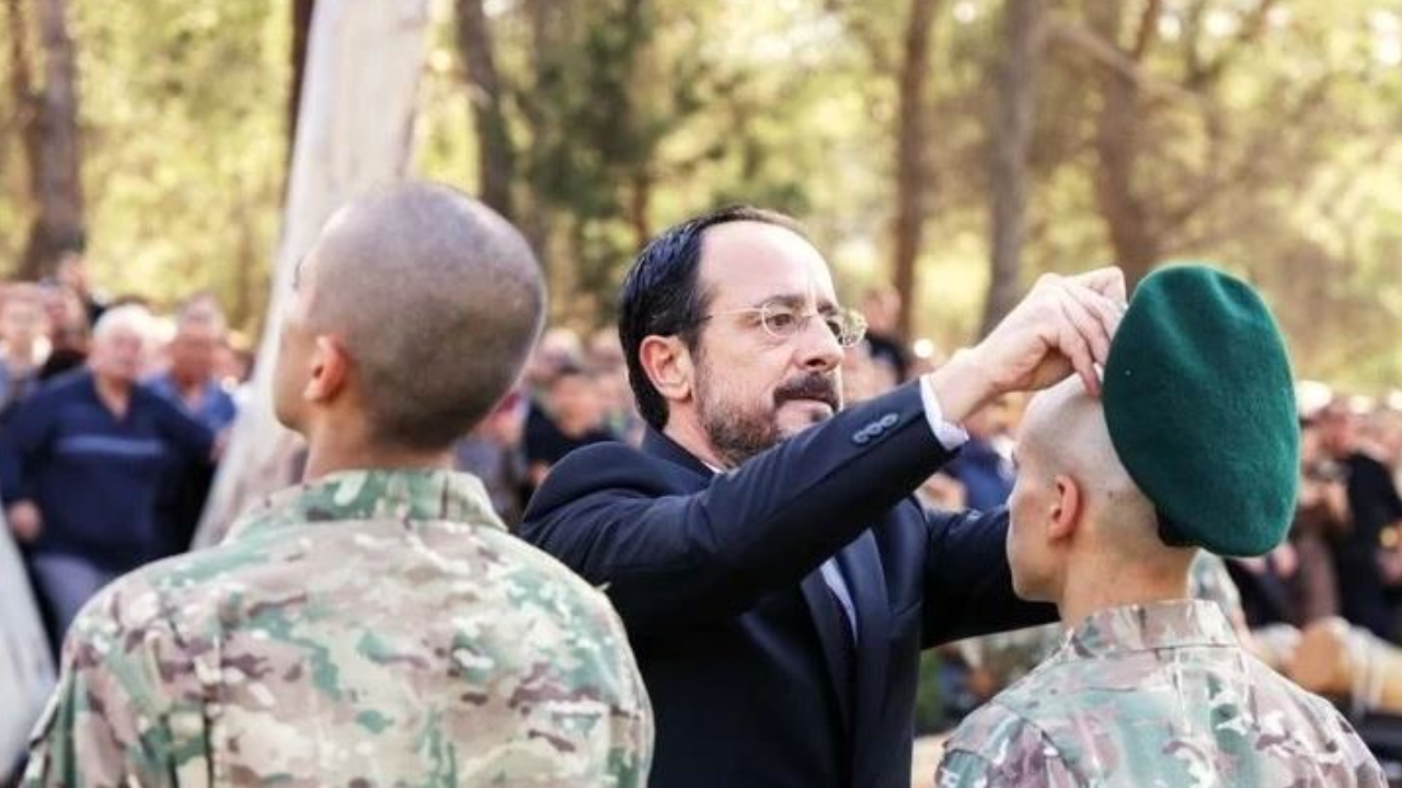 GKRY lideri Nikos Hristodulidis, “EOKA’nın kahramanları” olduğunu belirterek komando eğitimi gösterisi yapan acemi askerlere yeşil berelerini dualarla taktı. Kıbrıs Rum yönetiminde, Türk düşmanlığı’nın temeli eğitim sisteminde başlıyor.