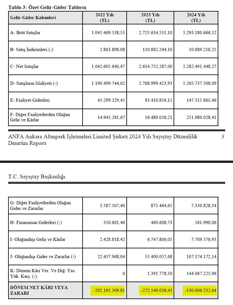 ANFA Ankara Altınpark İşletmeleri Limited Şirketi’nin 2024 Yılı Sayıştay Denetim Raporunda, şirketin milyonlarca lira zarar ettiği, sermayesini kaybettiği, hakedişlerin tahsil edilemediği ve borçların zamanında ödenemediği tespit edildi. ANFA’nın yüksek satış hacmine rağmen ciddi kayıp yaşadığı, likidite oranlarının dibe vurduğu, belediyeden tahsil edilemeyen hakedişlerin şirketi çıkmaza soktuğu ve zararın sermayeyi tamamen eriterek Türk Ticaret Kanunu’nun 376’ncı maddesi kapsamına giren dramatik bir tablo oluşturduğu belirtildi.