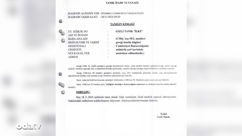 Belgeler karşılaştırılınca, gizli tanık “Meşe”nin 17 Mart 2025 tarihli ifadesinin büyük ölçüde iddianamede yer almadığı, buna karşılık aynı cümlelerin, aynı kelime dizilimleri ve aynı anlatım örgüsüyle gizli tanık “İlke”nin ifadesiymiş gibi metne geçirildiğini göstermişti.
